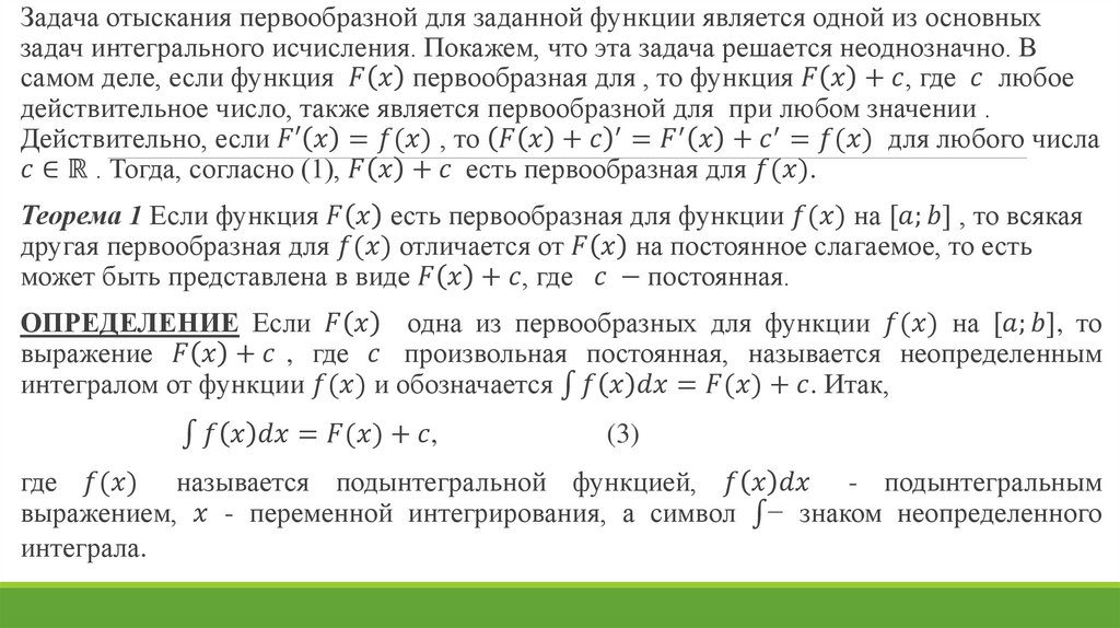 3. Первообразная функция и неопределенный интеграл