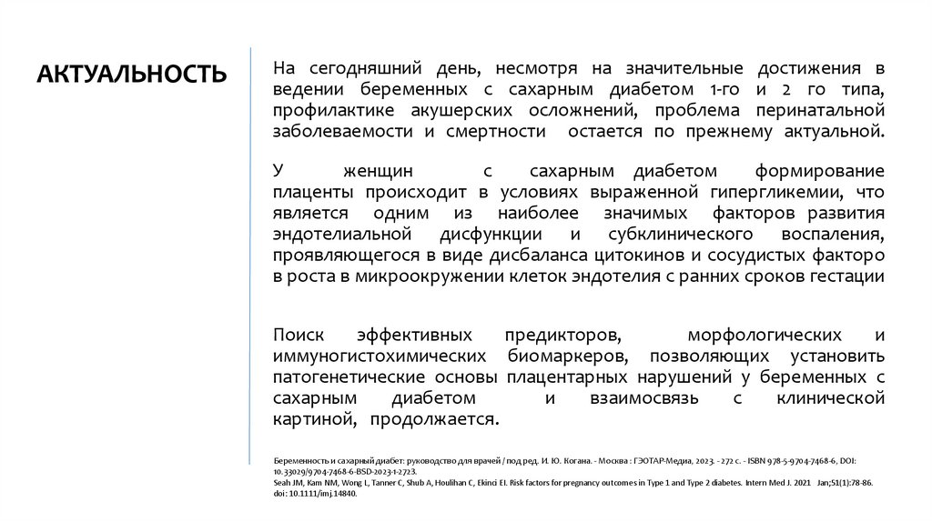 Беременность и сахарный диабет: руководство для врачей / под ред. И. Ю. Когана. - Москва : ГЭОТАР-Медиа, 2023. - 272 с. - ISBN 978-5-9704-7468-6, DOI: