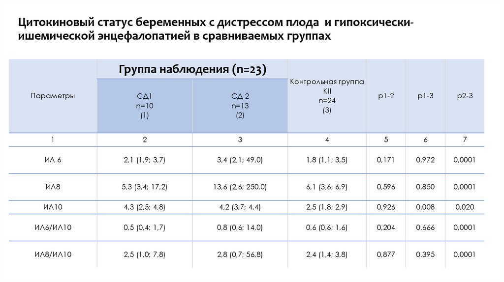 ИЛ 10 - ⩾ 3 пг/мл (RR = 10,12; р =0,0007)