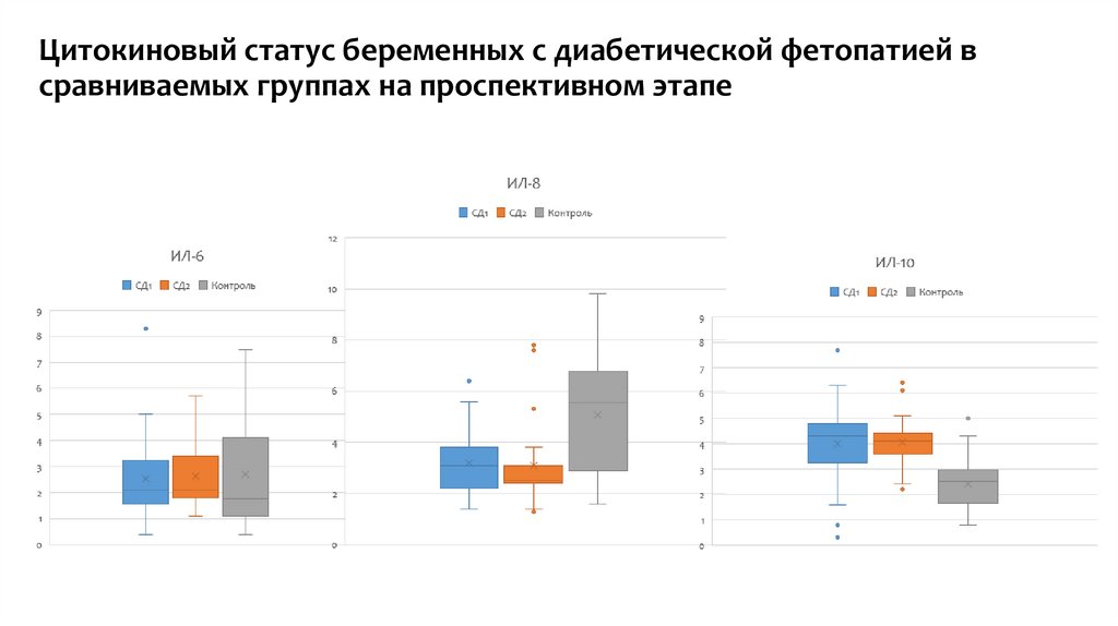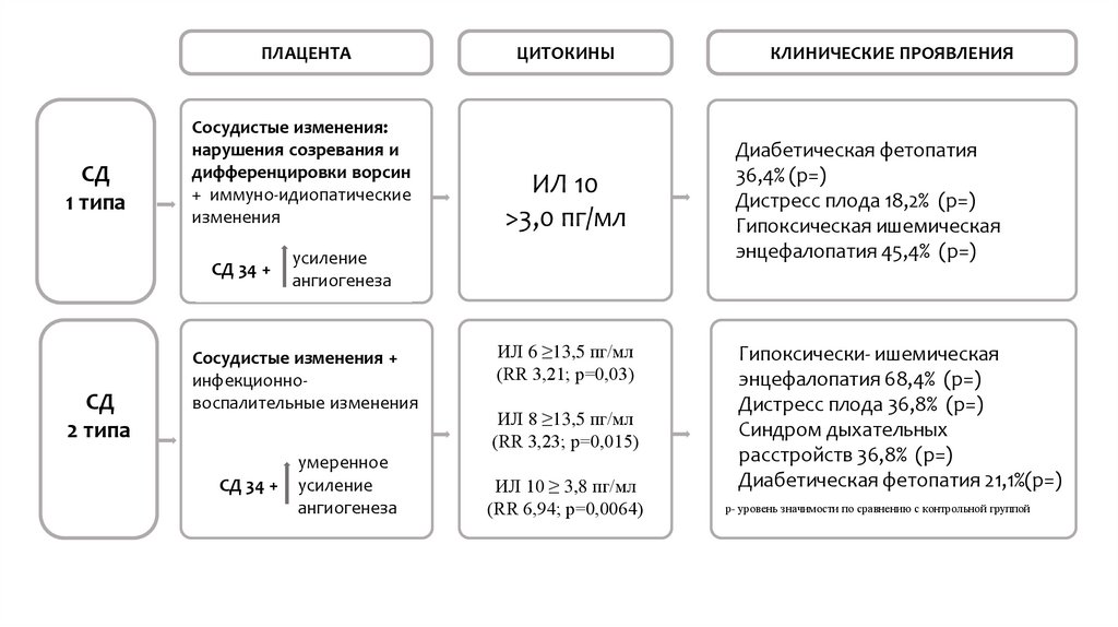2. При СД 2 типа уровень провоспалительных цитокинов превышает показатели пациенток с