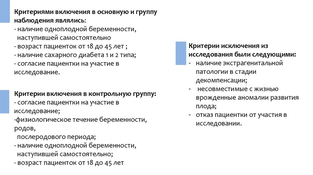 Критериями включения в основную и группунаблюдения являлись: