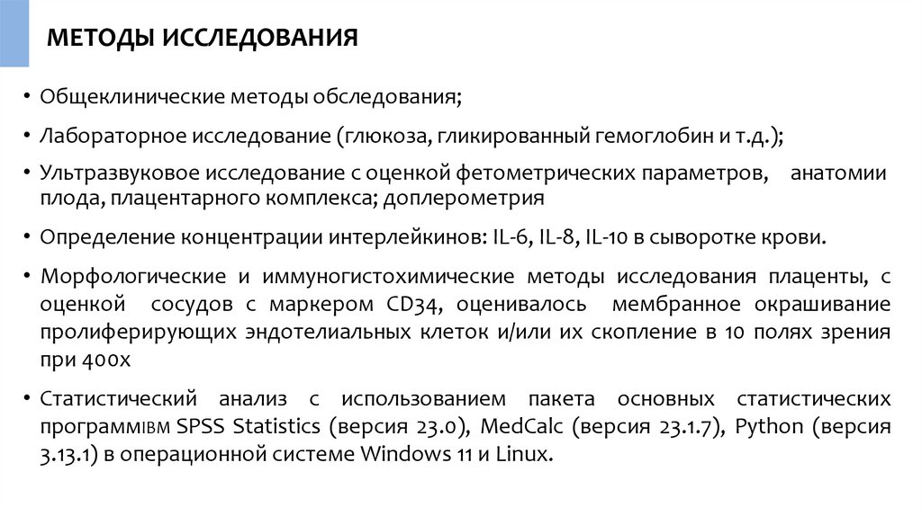 МЕТОДЫ ИССЛЕДОВАНИЯ• Общеклинические методы обследования;