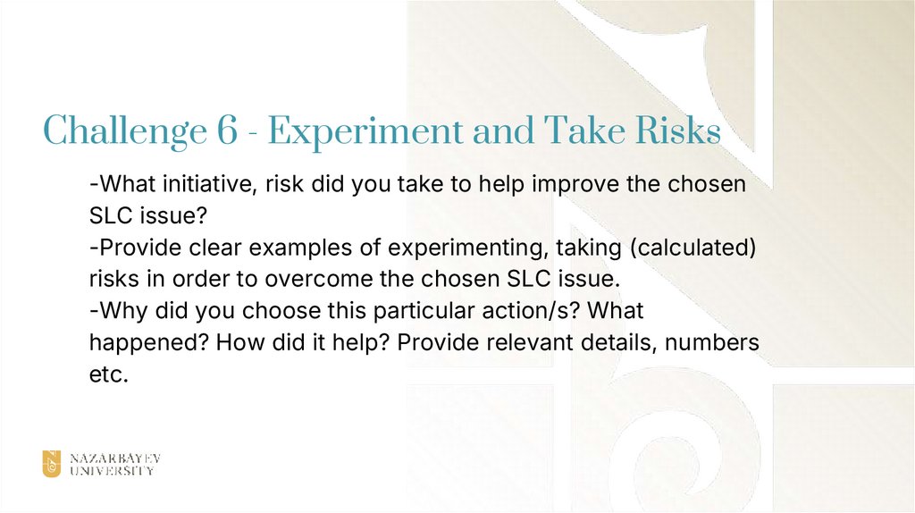 Challenge 6 - Experiment and Take Risks-What initiative, risk did you take to help improve the chosen