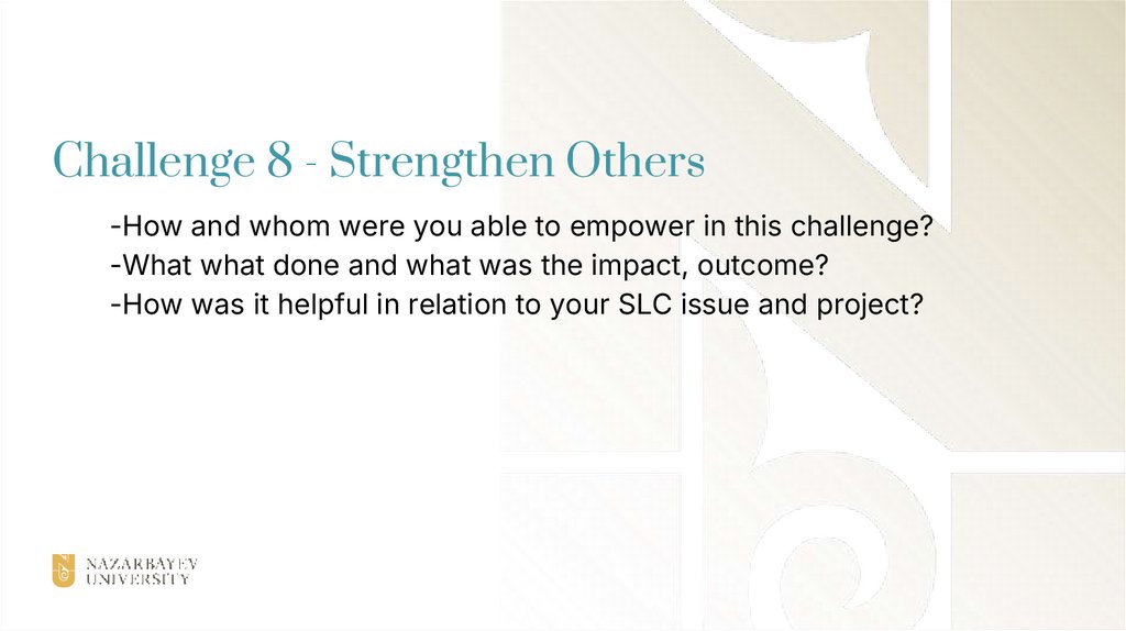 Challenge 8 - Strengthen Others-How and whom were you able to empower in this challenge?