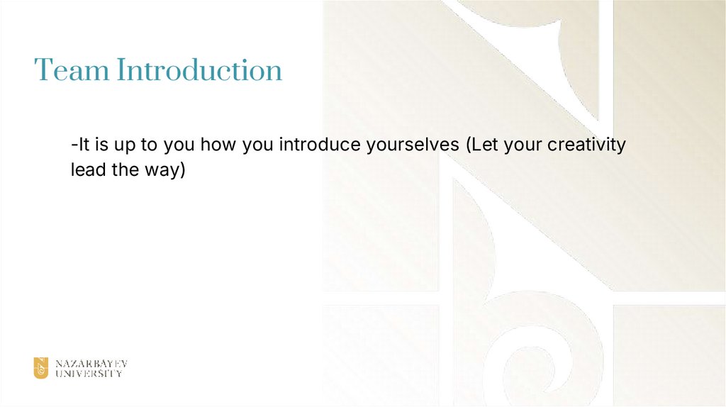 Team Introduction-It is up to you how you introduce yourselves (Let your creativity