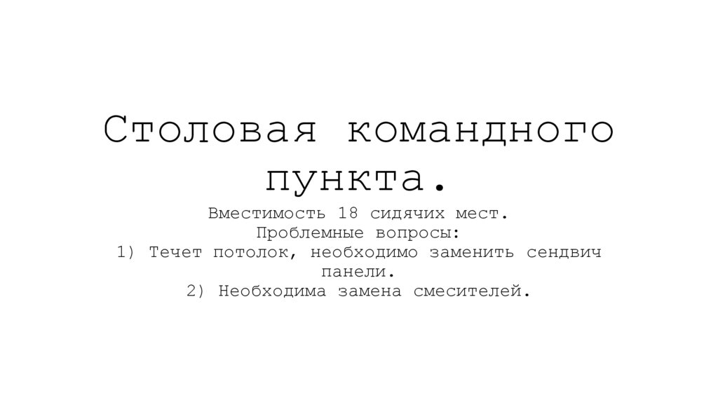 1. Столовая командного пункта.