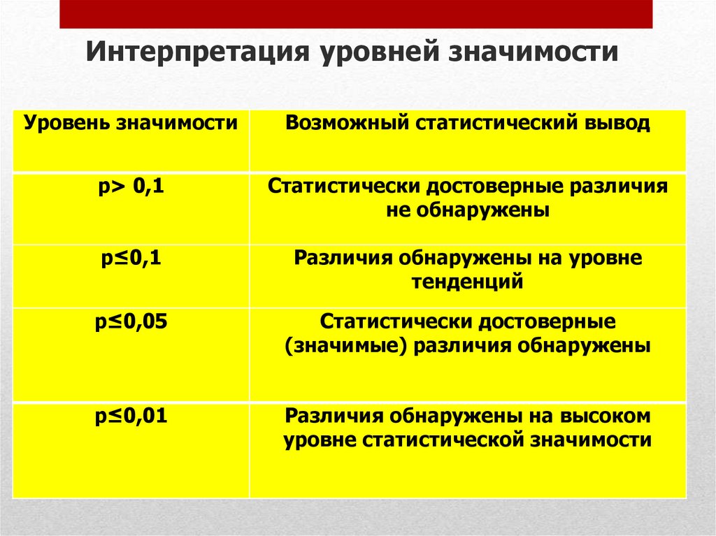 Интерпретация уровней значимостиУровень значимости