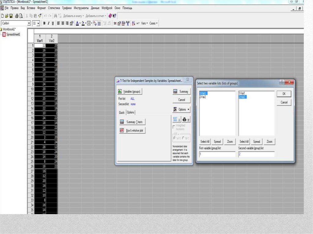 выборки соответствует испытуемый 2 выборки