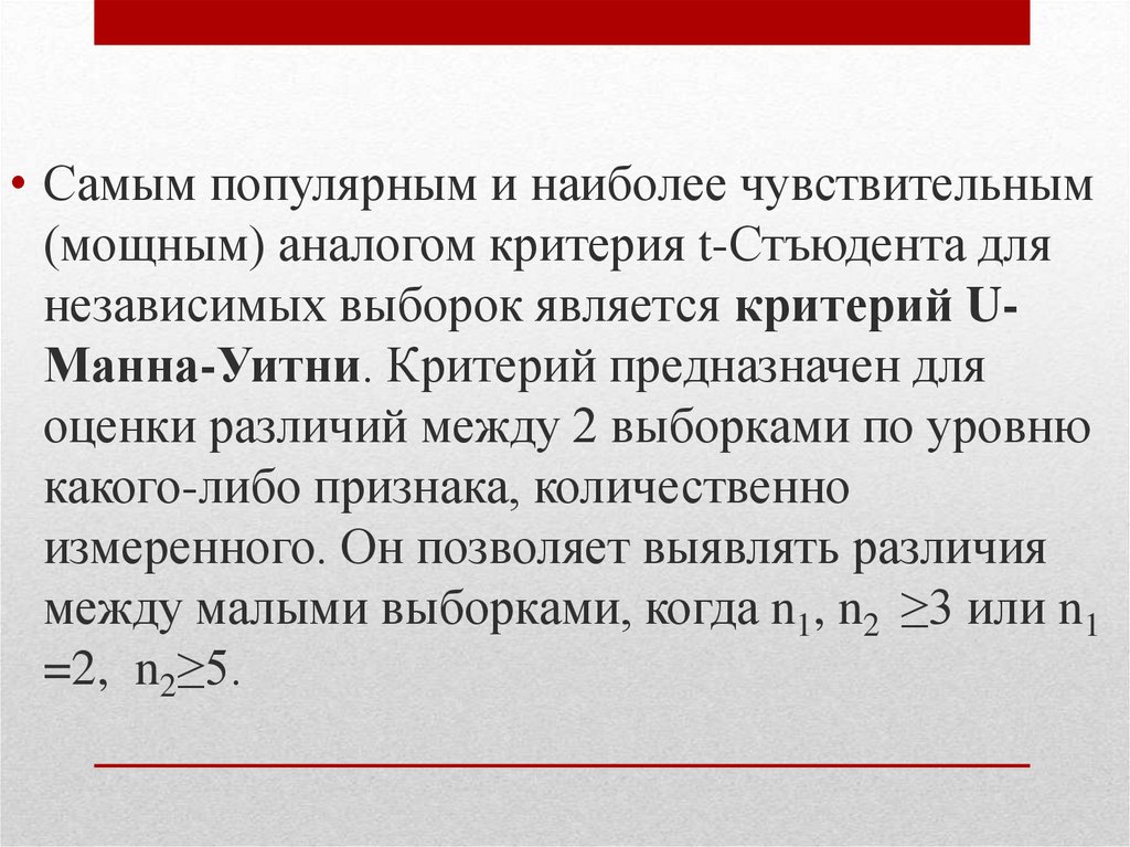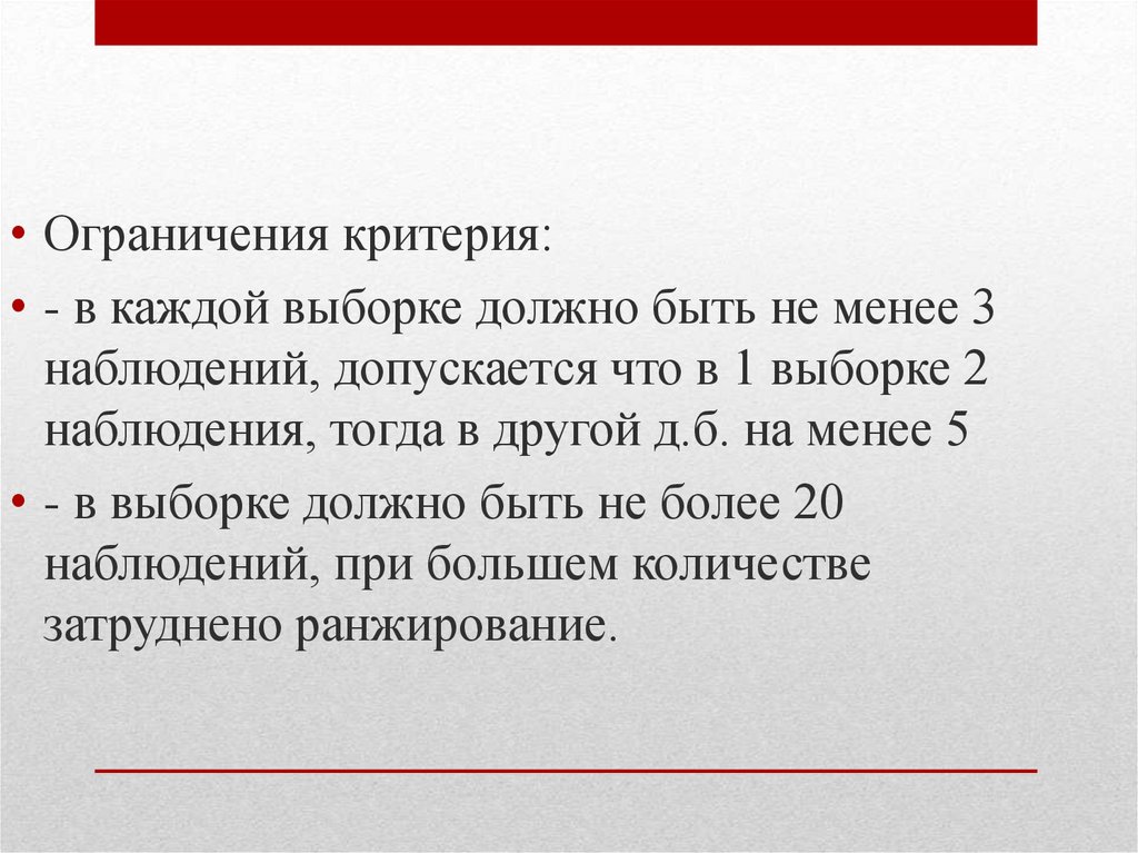 • при сравнении 2 выборок их общая численность д.б. не