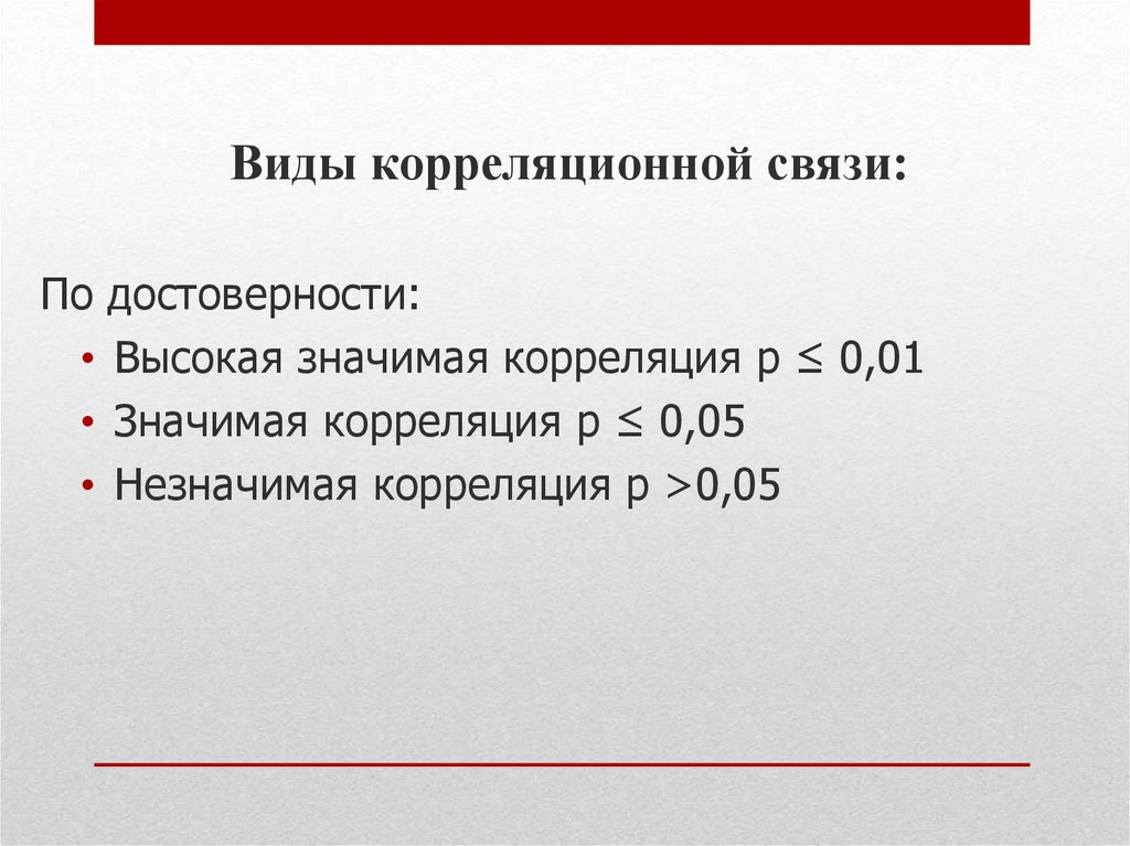 Виды корреляционной связи:По достоверности: