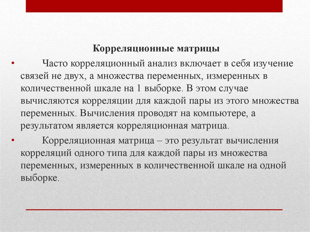 Корреляционные матрицыЧасто корреляционный анализ включает в себя изучение