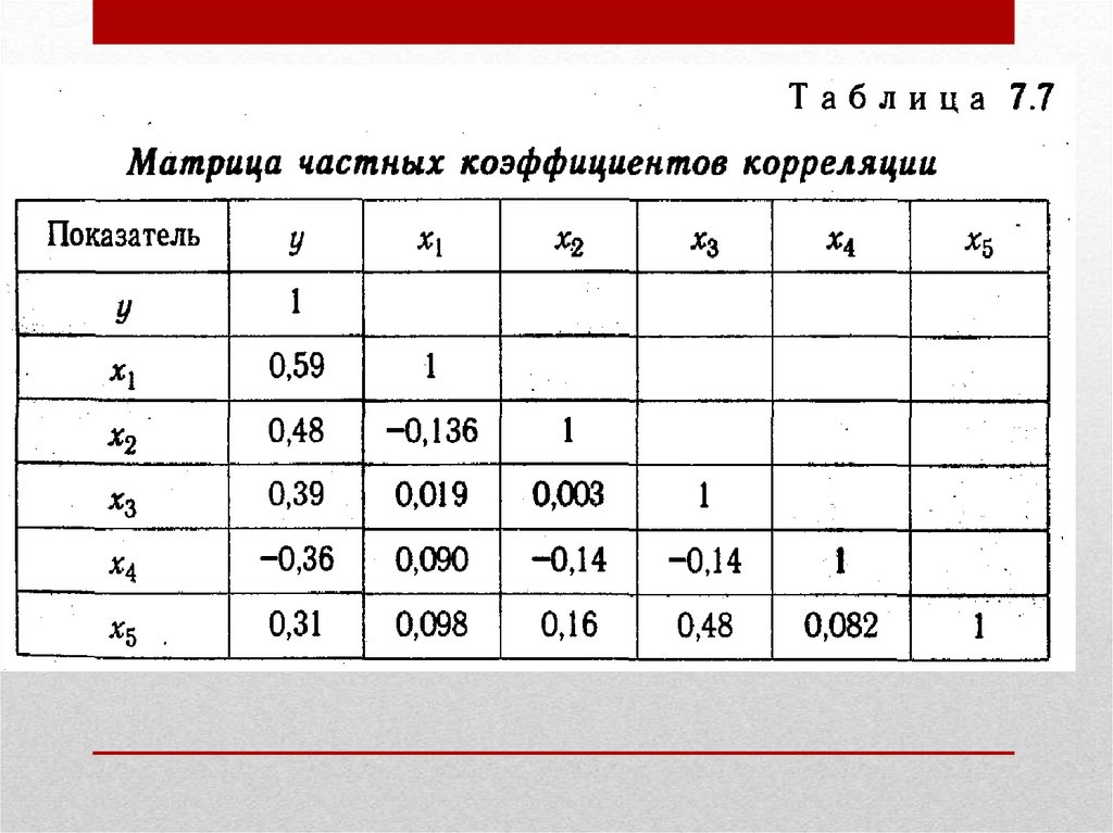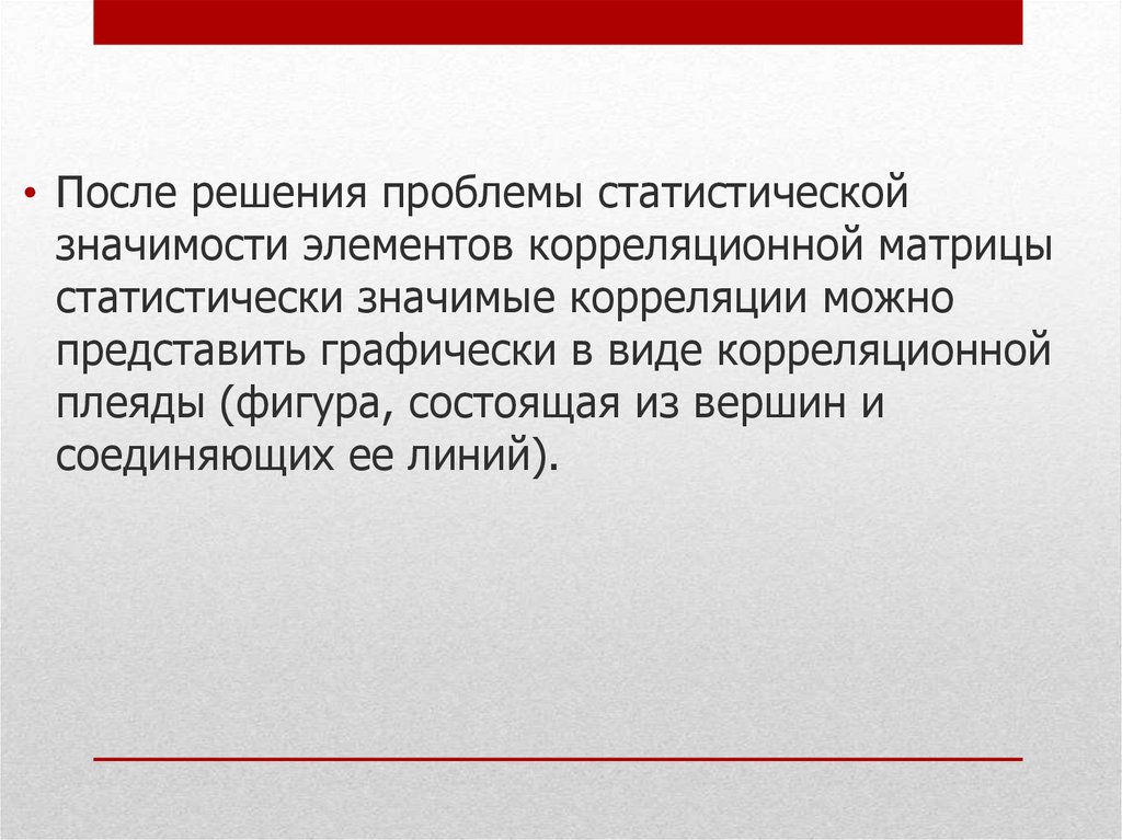 • После решения проблемы статистическойзначимости элементов корреляционной матрицы