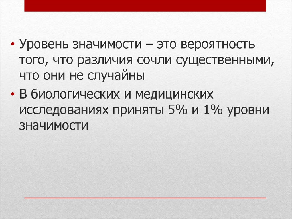 • Уровень значимости – это вероятностьтого, что различия сочли существенными,