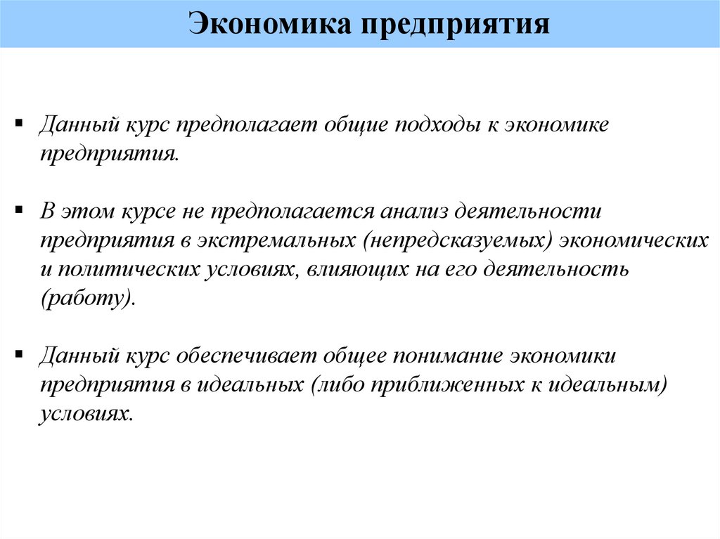 Экономика предприятияДанный курс предполагает общие подходы к экономике