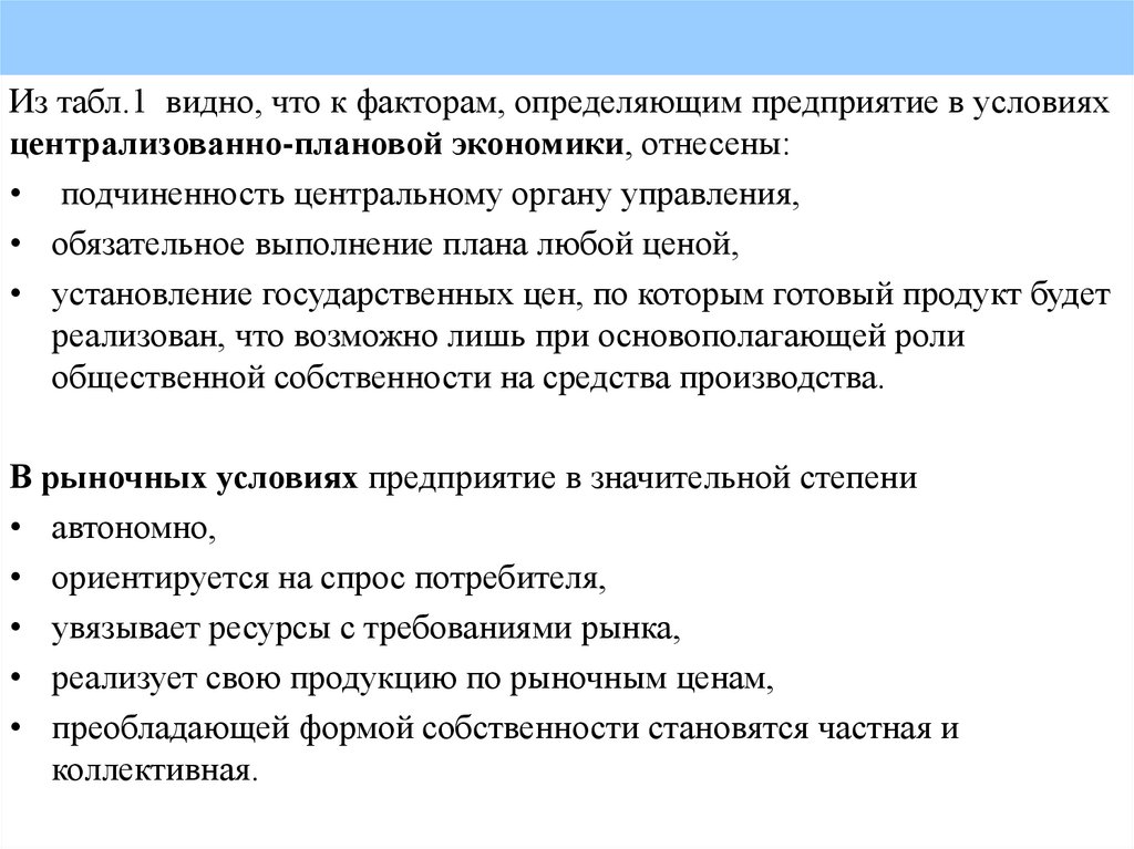 предприятия в период перехода к рыночным условиям хозяйствования.