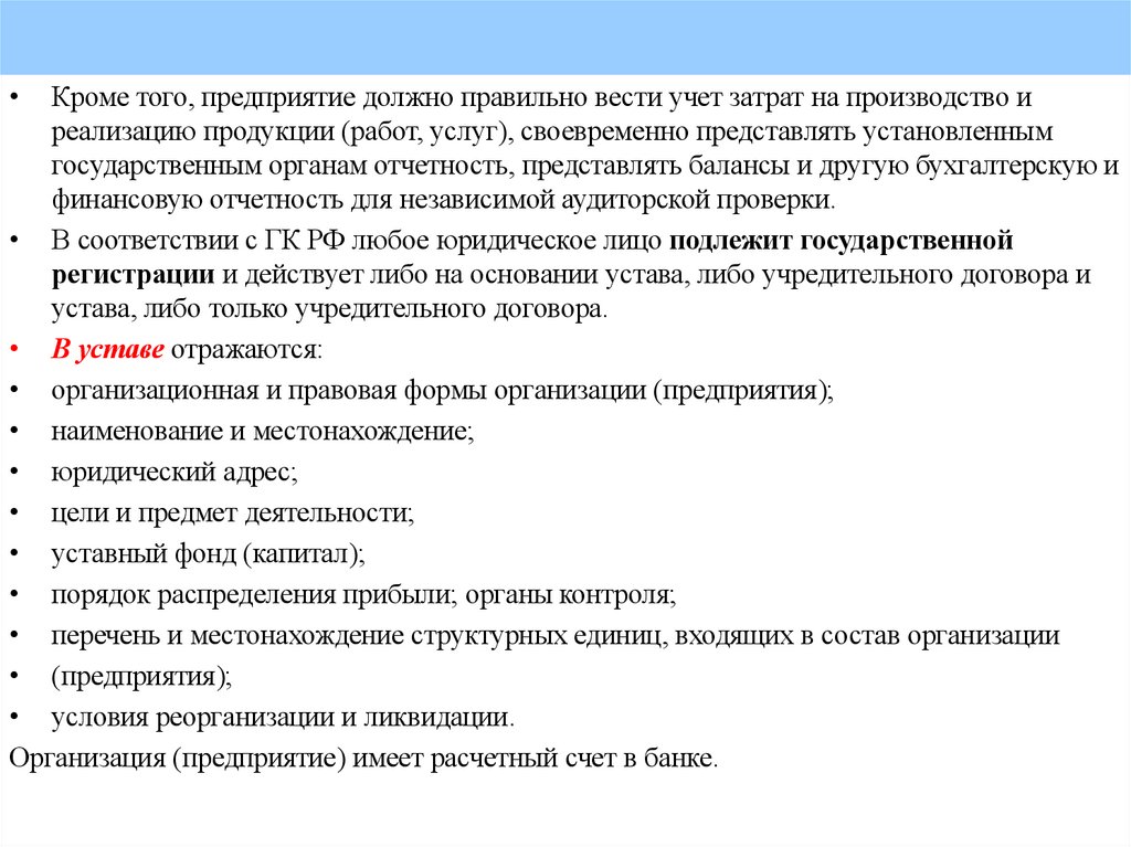 деятельности предприятия, его права и обязанности как юридического лица.