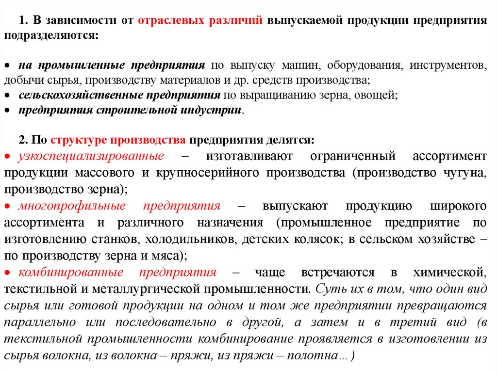 1. В зависимости от отраслевых различий выпускаемой продукции предприятияподразделяются: