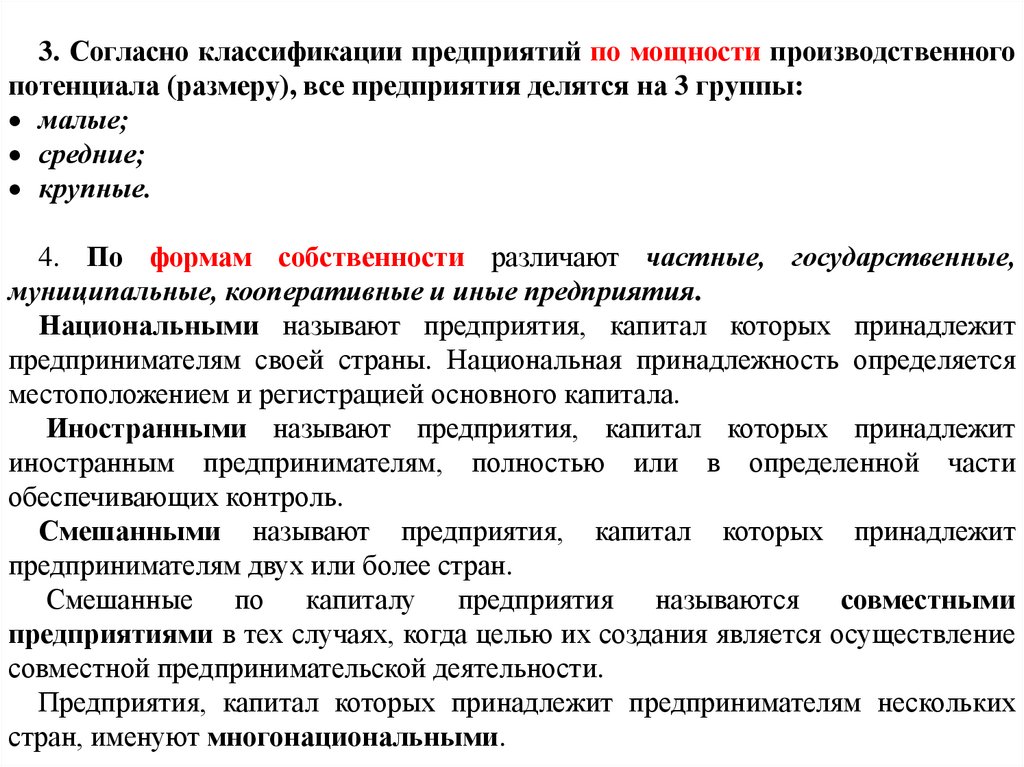 3. Согласно классификации предприятий по мощности производственногопотенциала (размеру), все предприятия делятся на 3 группы: