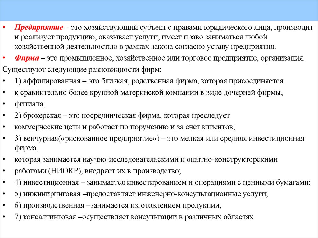 • Фирма – это промышленное, хозяйственное или торговое предприятие, организация.