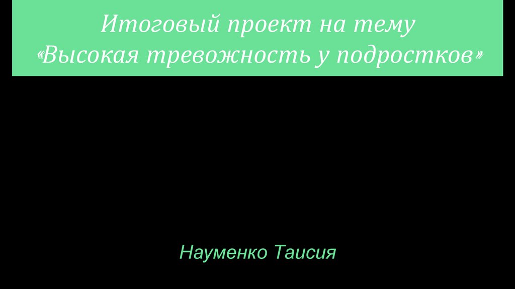 Итоговый проект на тему«Высокая тревожность у подростков»