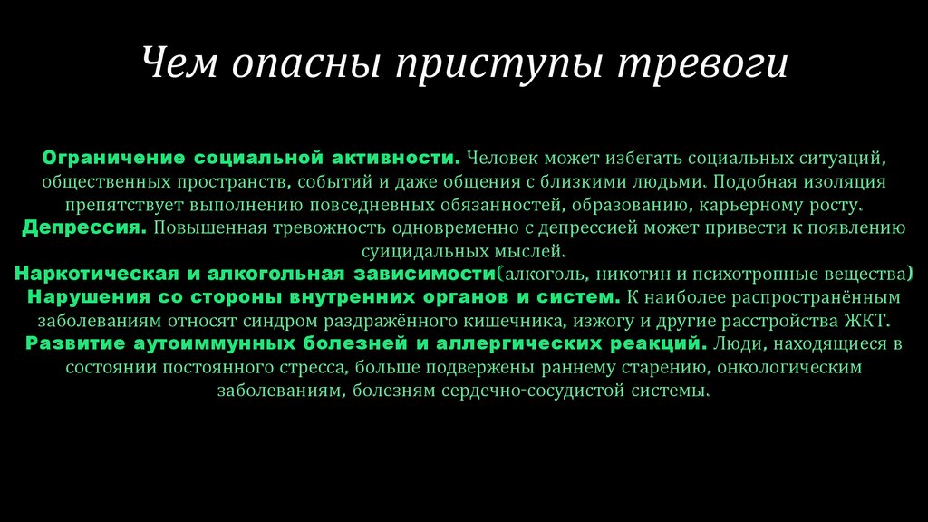 • Чем опасны приступы тревоги
