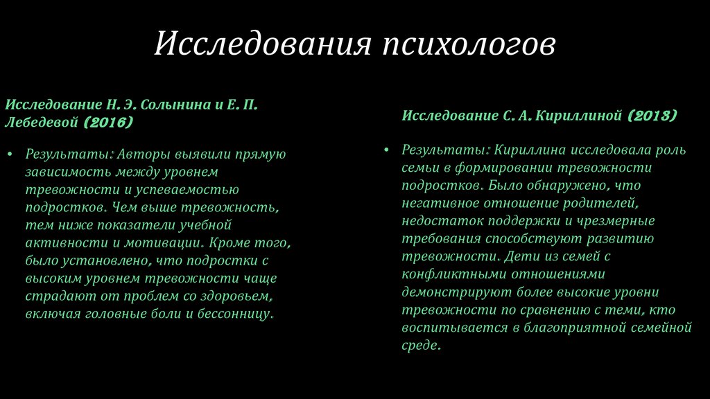 Исследования психологовИсследование Н. Э. Солынина и Е. П.