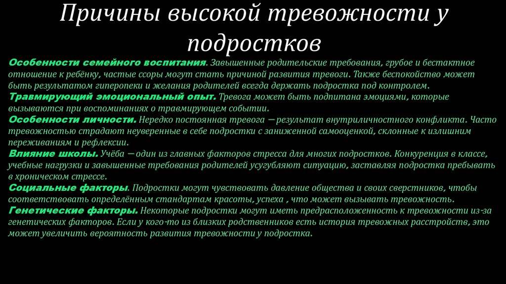 • Причины высокой тревожности у