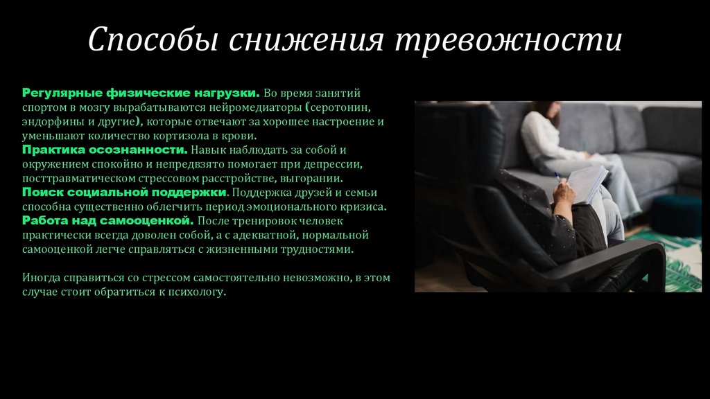 • Способы снижения тревожности