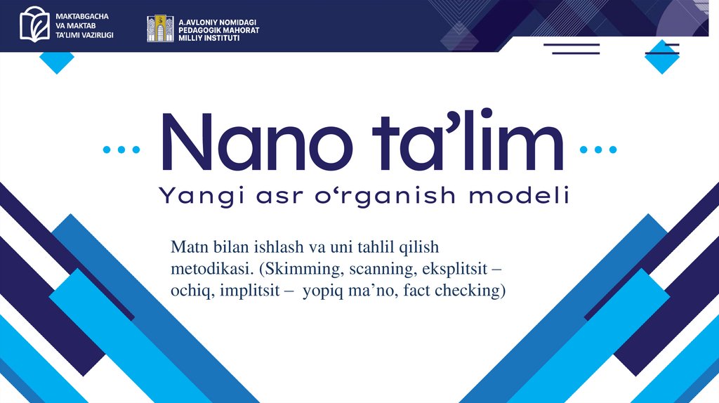 metodikasi. (Skimming, scanning, eksplitsit –