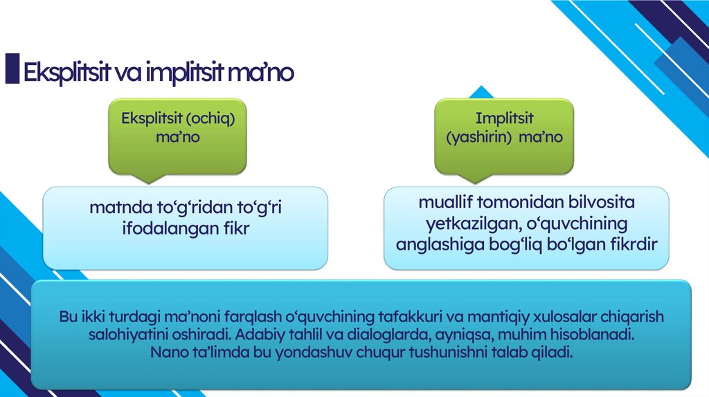 Bu ikki turdagi ma’noni farqlash o‘quvchining tafakkuri va mantiqiy xulosalar chiqarish