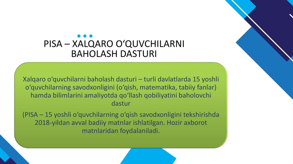(PISA – 15 yoshli o‘quvchilarning o‘qish savodxonligini tekshirishda