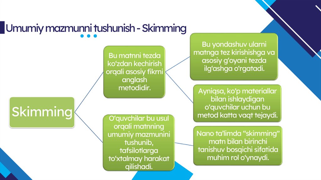 Umumiy mazmunni tushunish- SkimmingBu matnni tezda