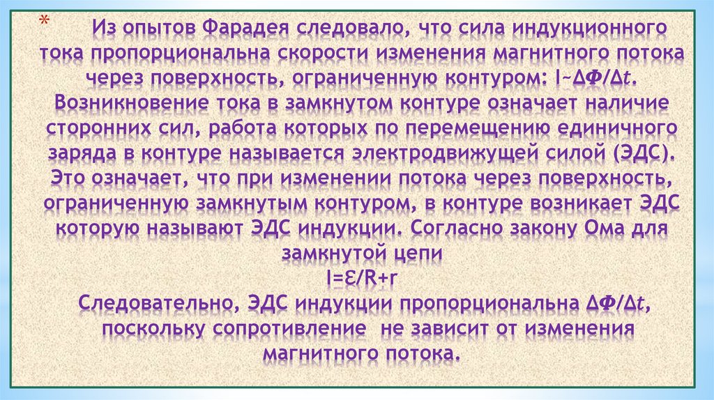 *Электромагнитная индукция-возникновение электродвижущей силы(эдс