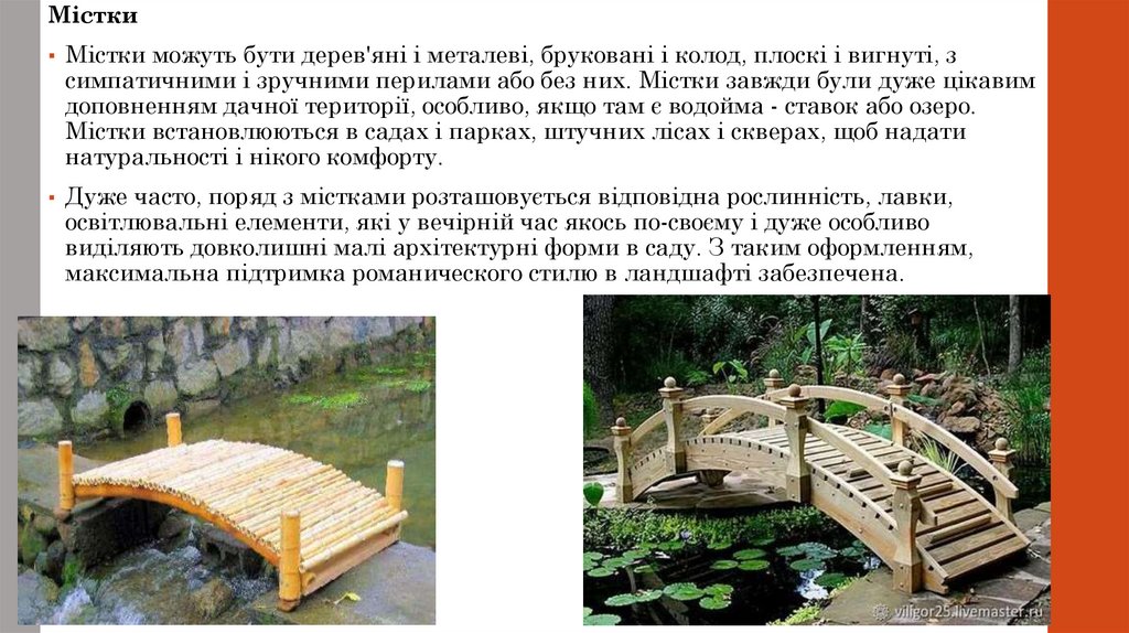 симпатичними і зручними перилами або без них. Містки завжди були дуже цікавим