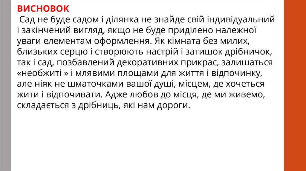 ВИСНОВОКСад не буде садом і ділянка не знайде свій індивідуальний