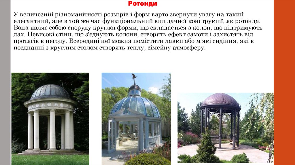 будь-якого саду, незалежно від площі території і розмірів архітектурної форми.