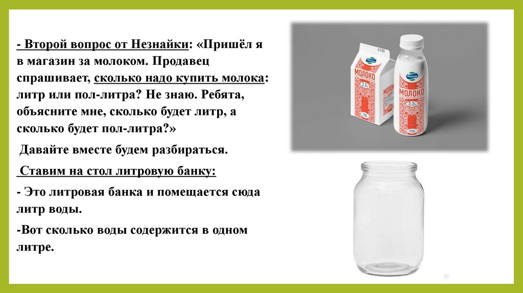 - Второй вопрос от Незнайки: «Пришёл яв магазин за молоком. Продавец