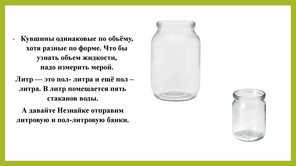 - Кувшины одинаковые по объёму,хотя разные по форме. Что бы