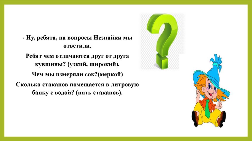 - Ну, ребята, на вопросы Незнайки мыответили.