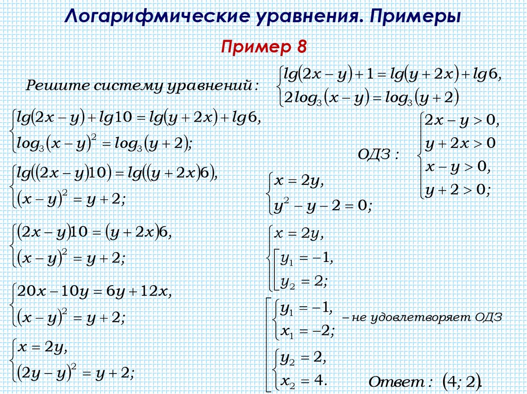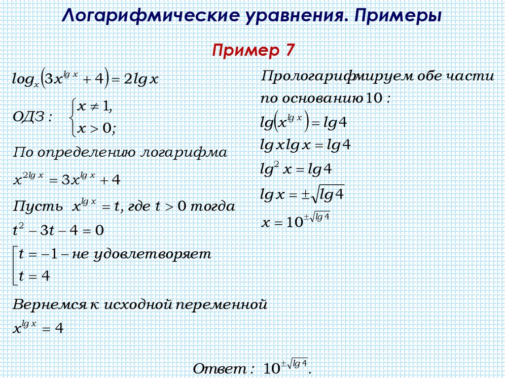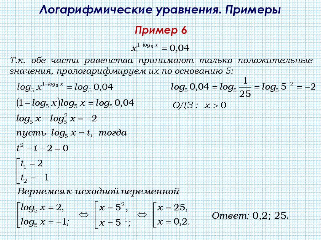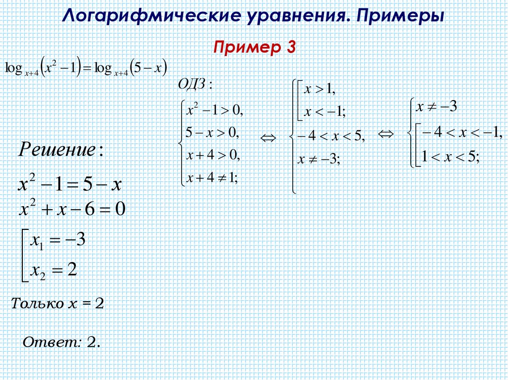 Логарифмические уравнения. Примерыlog x 4 x 2 1 log x 4 5 x