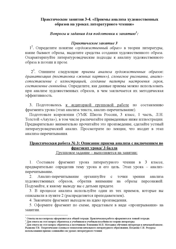 Практические занятия 3-4. «Приемы анализа художественныхобразов на уроках литературного чтения»