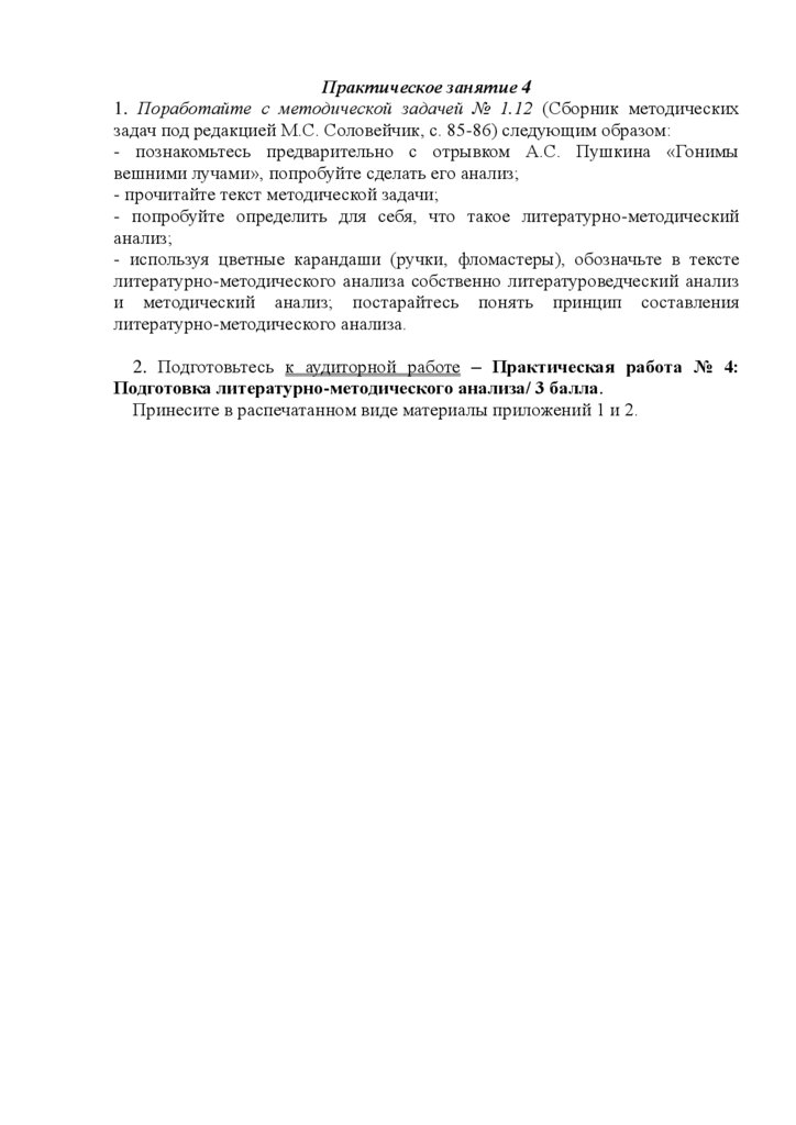 Подготовка литературно-методического анализа/ 3 балла.