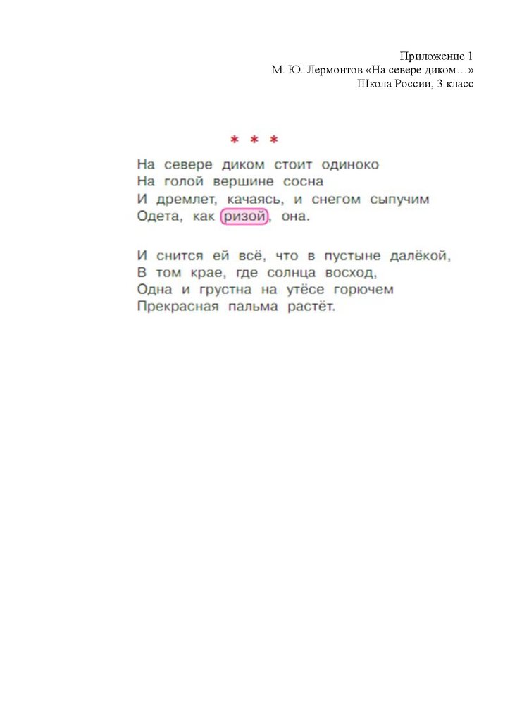 Приложение 1М. Ю. Лермонтов «На севере диком…»