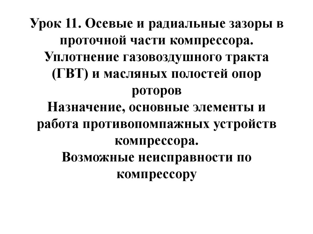 1. Урок 11. Осевые и радиальные зазоры в проточной части компрессора. Уплотнение газовоздушного тракта (ГВТ) и масляных полостей