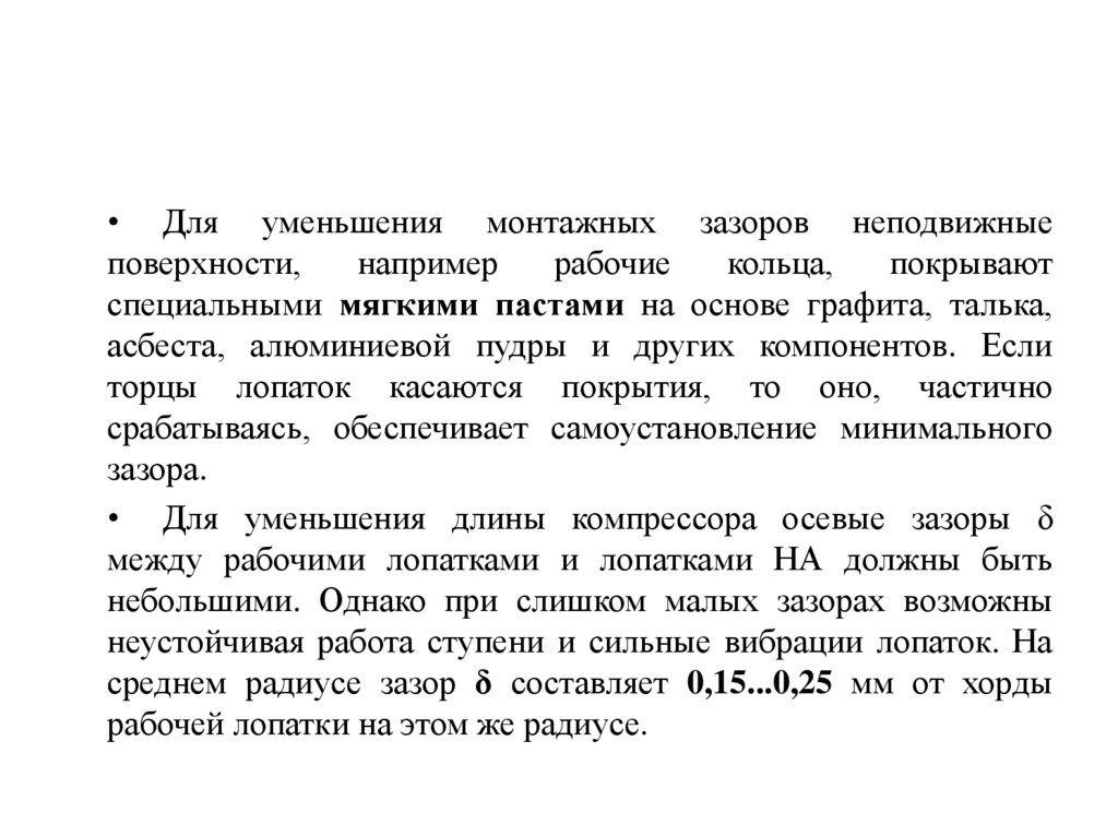 • Для уменьшения длины компрессора осевые зазоры δ