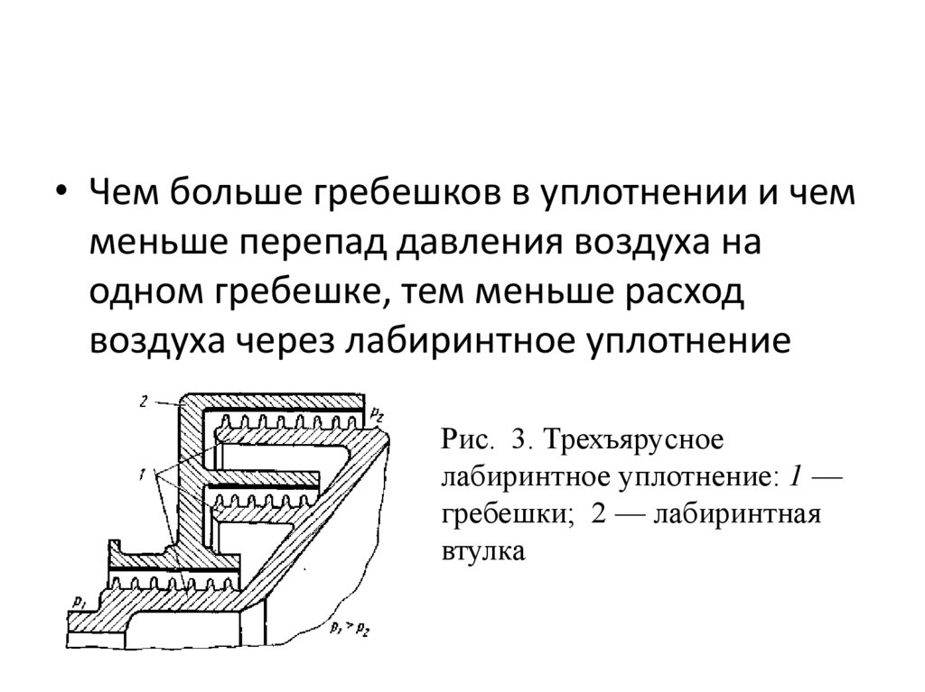 • Чем больше гребешков в уплотнении и чемменьше перепад давления воздуха на