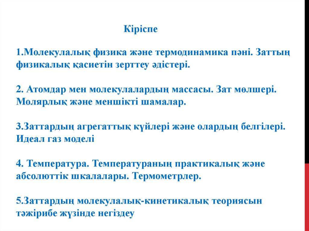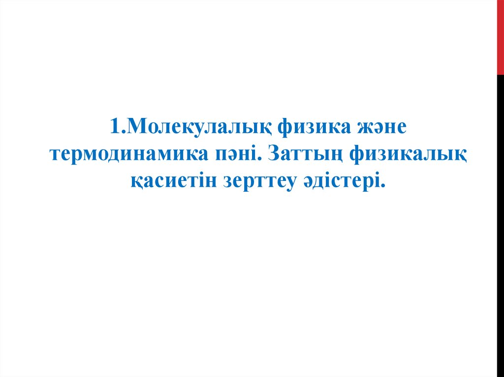 1.Молекулалық физика жәнетермодинамика пәні. Заттың физикалық