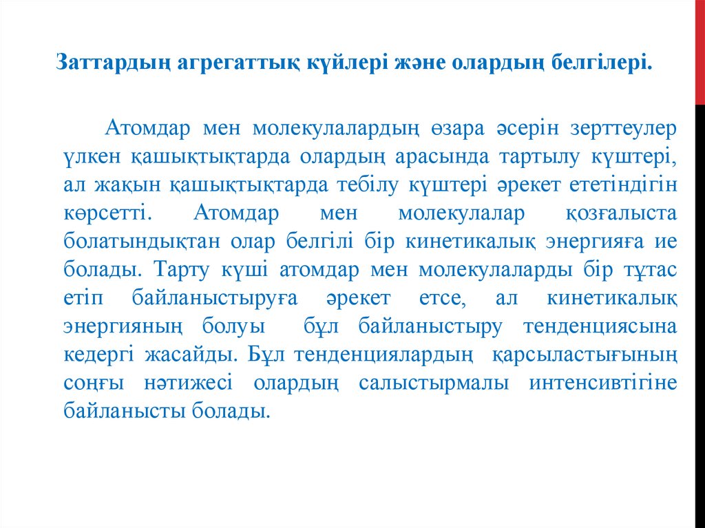 3.Заттардың агрегаттық күйлері және олардың белгілері.
