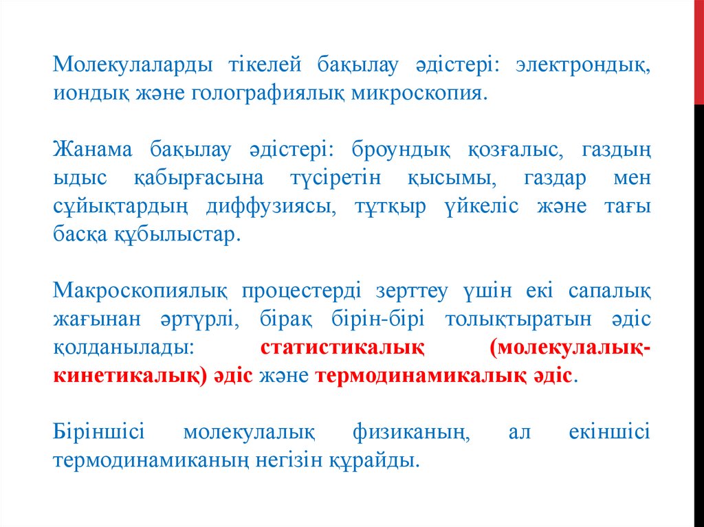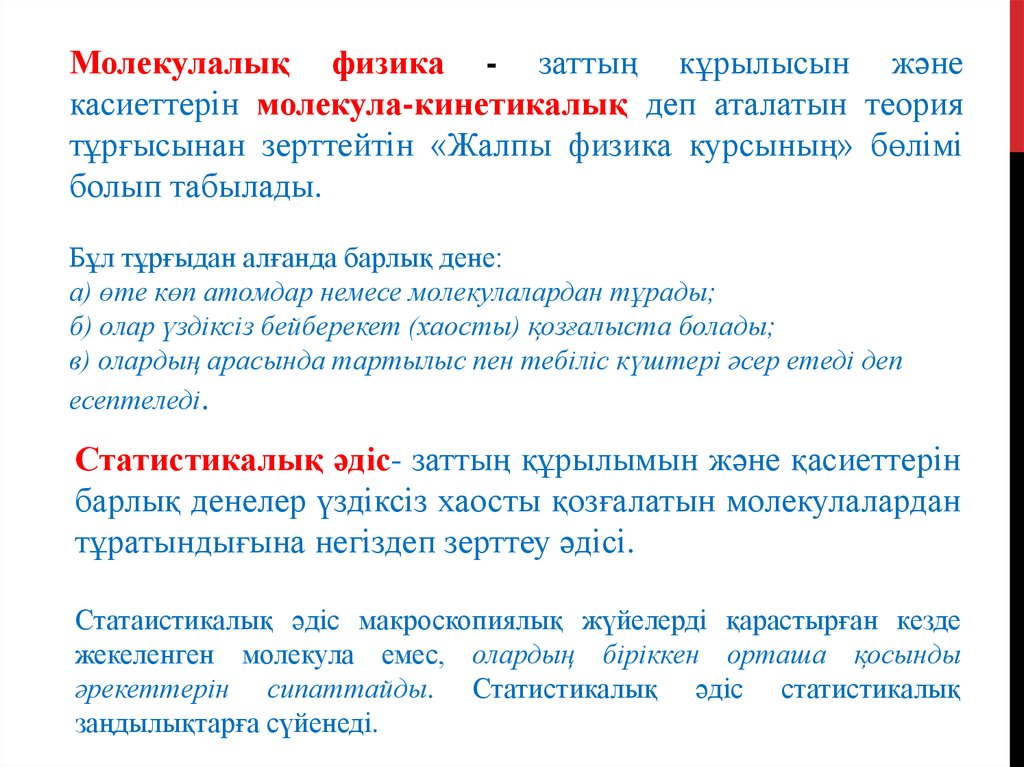 Молекулалық физика - заттың кұрылысын жәнекасиеттерін молекула-кинетикалық деп аталатын теория