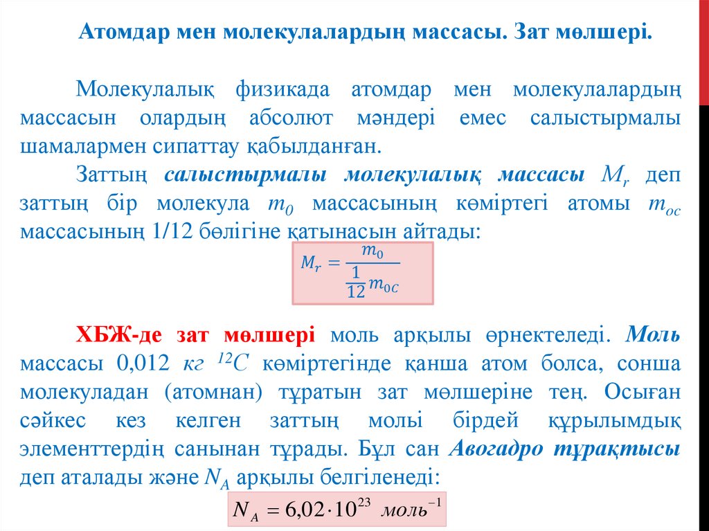 2. Атомдар мен молекулалардың массасы. Зат мөлшері.